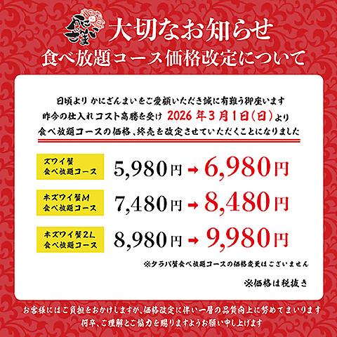 ズワイ蟹・寿司 食べ放題