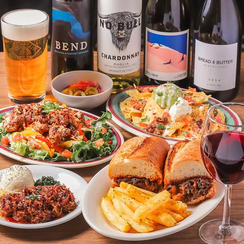 豊富なお食事メニュー 厳選カリフォルニアワイン