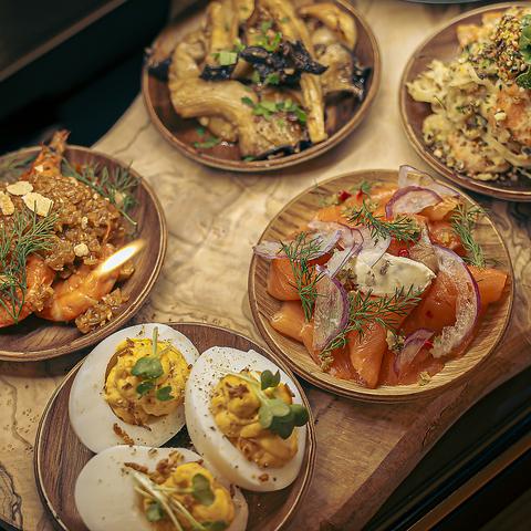ピンチョスなど多彩な料理 様々な国のワインが勢揃い
