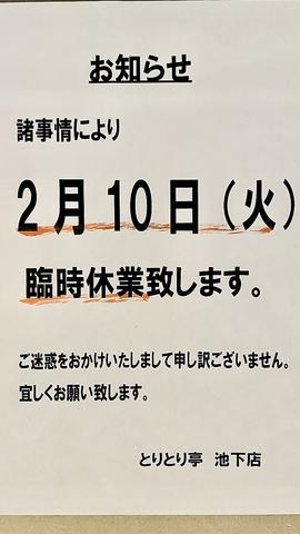 - 2月10日臨時休業致します。