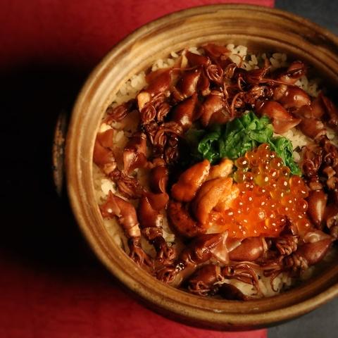行者ニンニク醤油漬け 漬け本マグロと蕎麦の実
