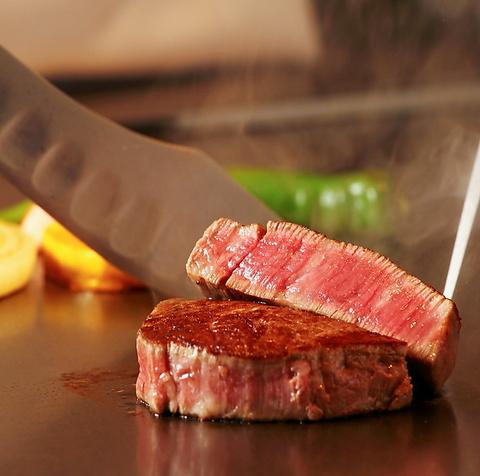 目の前に広がる鉄板で贅沢ステーキを味わう
