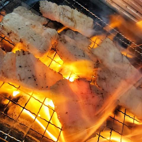 備長炭を使用した炭火焼料理とビール♪