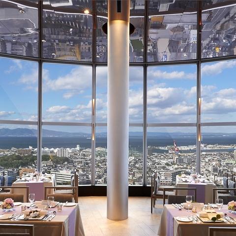高層階でフレンチ料理を楽しむ